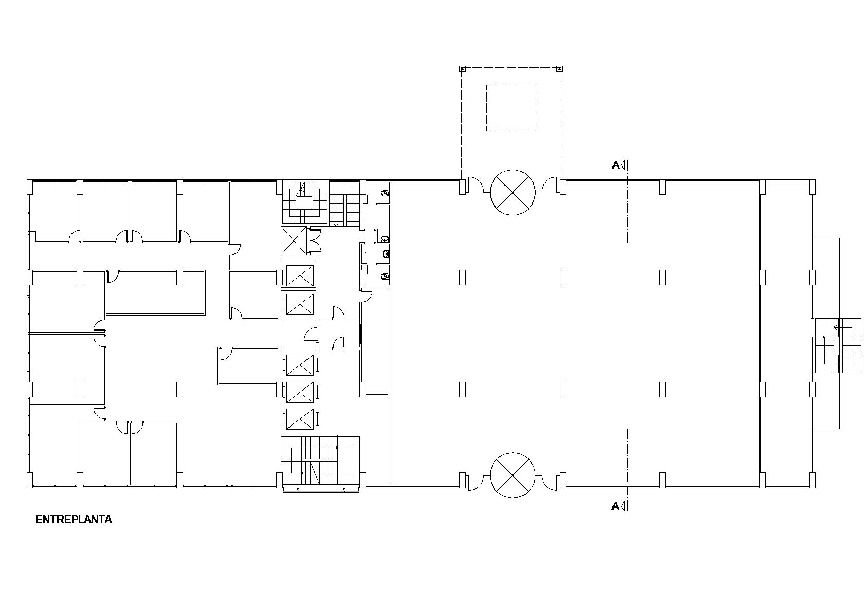 Parte de la entreplanta, que tiene en la actualidad un doble espacio a la recepción, se demuele para dar amplitud y esbeltez al vestíbulo de entrada, al otro lado del núcleo de ascensores se ubicaran las nuevas oficinas.