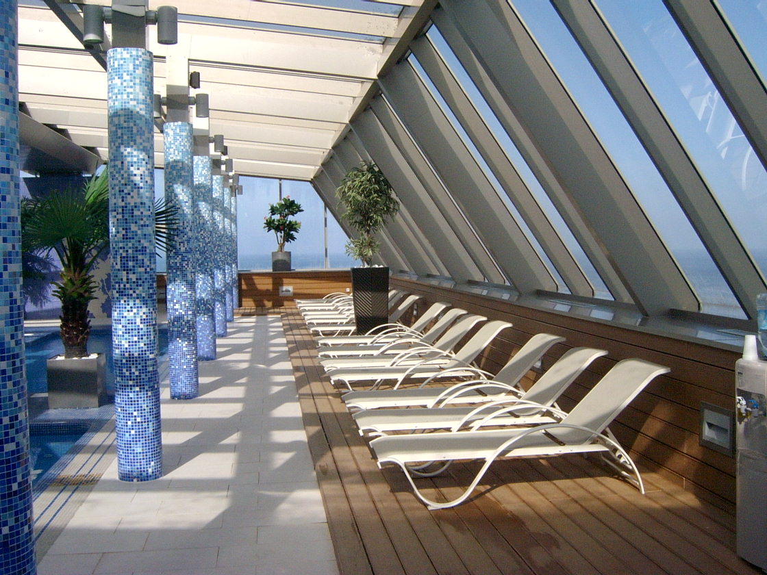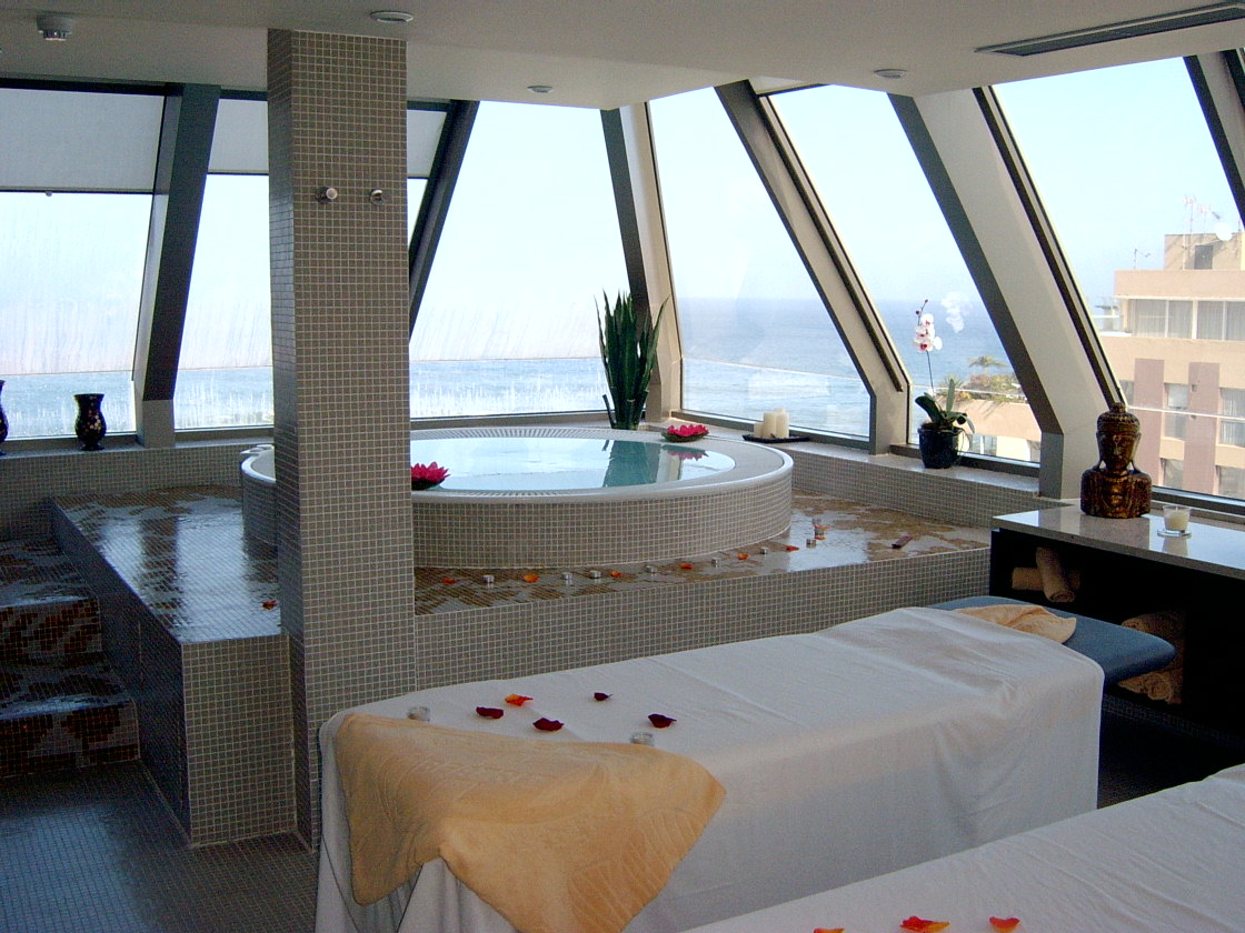 La intervención en la planta trece consiste en transformar las cinco habitaciones que hay actualmente, en dos suites y la otra zona que ahora es terraza, se convierte en la zona de masajes y terapias del SPA. En la terraza descubierta de la planta catorce, se realiza una estructura de acero, la cual se acristala perimetralmente a modo de fachada y la piscina se transforma en un SPA.