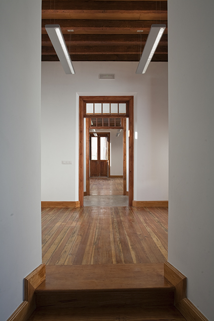 Por imperativo del nuevo uso, se reforzaron las vigas de madera con estructura metálica la cual se dejó vista para que se apreciase la intervención.