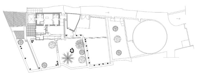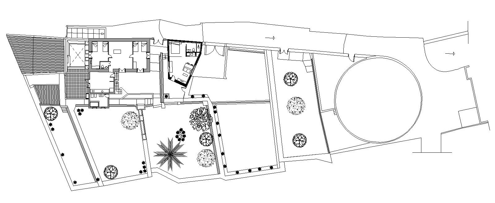 En una finca de asentamiento rural, existe una vivienda unifamiliar, que en su día la utilizaron los medianeros. Debido a la topografía del terreno sobre el que se asienta, se distribuye en una planta, pero a distintos niveles. En la planta baja del nivel 1, se sitúa la bodega, un cuarto de aperos y almacenes, que correspondían a los antiguos establos. La planta baja del nivel 2 corresponde al acceso, salón-comedor, cocina, un baño, un aseo y dos dormitorios. Próxima a la casa, en una construcción independiente y aislada, existe un trastero, el cual se proyecta la reforma para convertirlo en un pequeño estudio compuesto de salón-cocina-dormitorio y un baño. La cama está separada del salón por una celosía de madera.