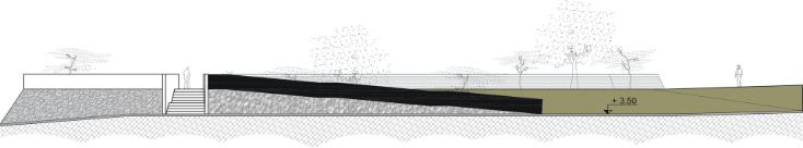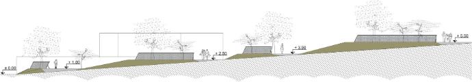 De las cuatro plataformas proyectadas, adquieren una mayor importancia las dos de mayor tamaño, puesto que en ambas se localizan los puntos de conexión peatonal con el futuro Centro de Salud y con el Centro Cultural respectivamente.