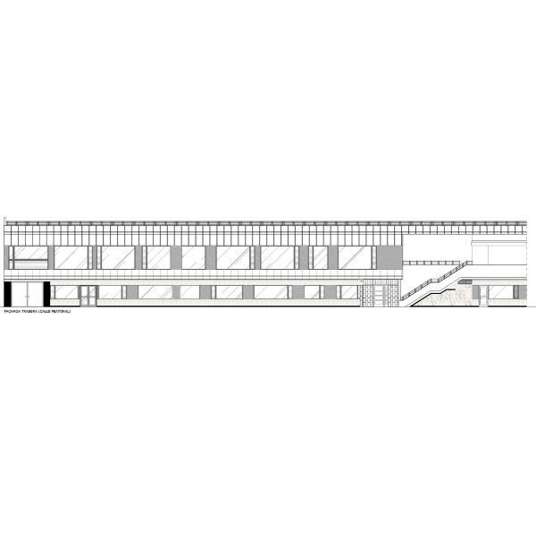 La fachada del local con estas bandas antes citadas de elementos prefabricados, tiene una lectura horizontal, es por ello que en la reforma propuesta, se potencia aún más esta horizontalidad.